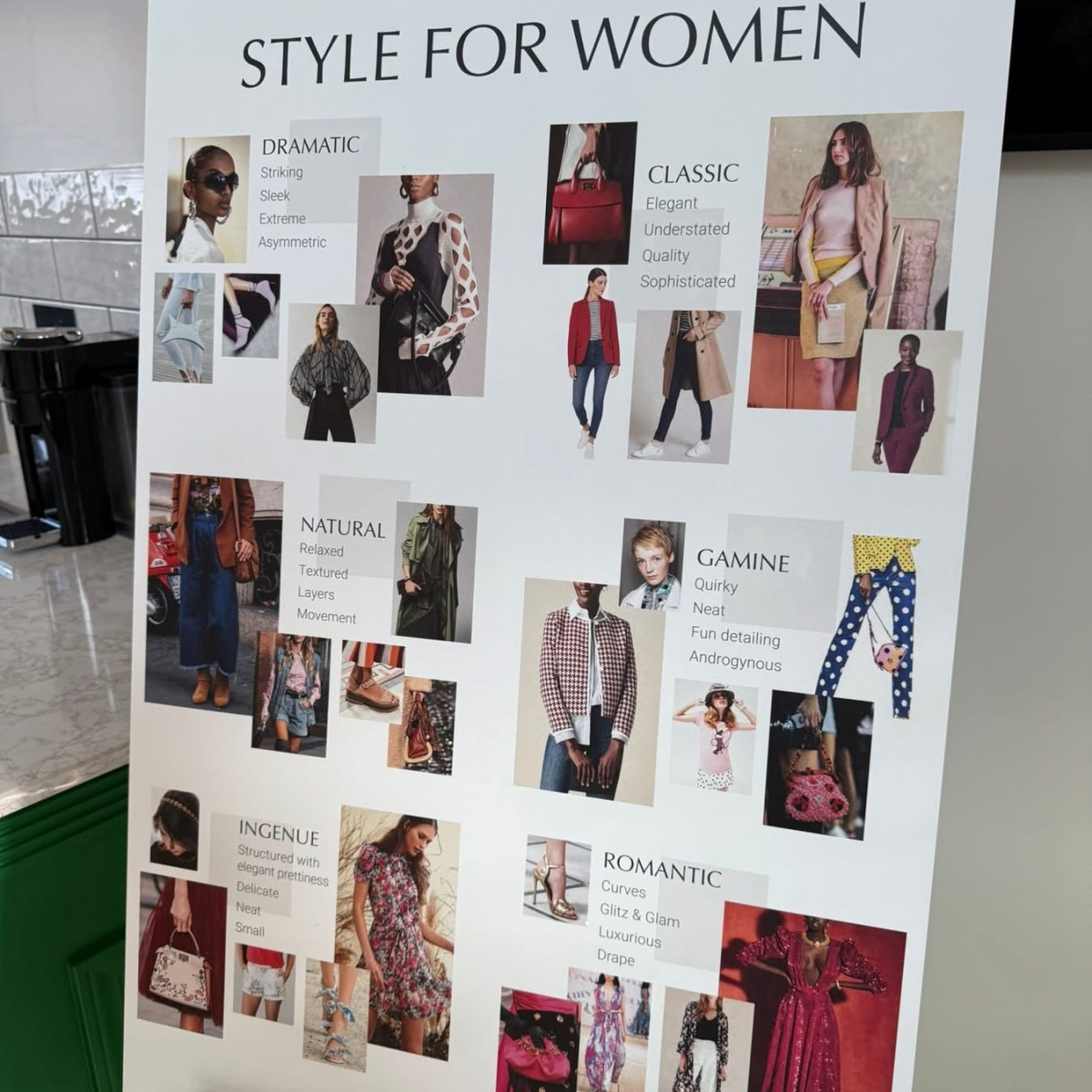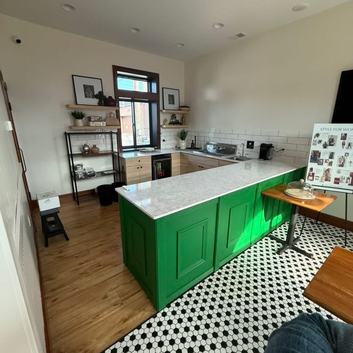 The other half of the building is home to the Style Room, where my clothing rack, style board, and full kitchen create a comfortable space for learning and laughter. Clients can expect an experience that feels both personal and polished—discovering how to honor their unique body shape, personality, and lifestyle.